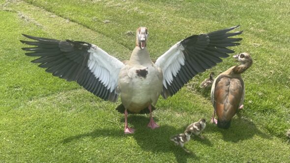 Frau Angela Eckrodt gelang der Schnappschuss der Nilgänse-Famile am 26.07.2025 auf Bahn 11.